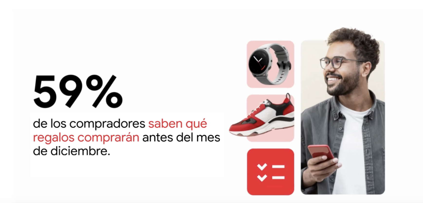 A medida que se acerca una fecha clave, las personas comienzan a sentir la presión y adoptan una mentalidad decidida. En esta etapa, incluso los compradores más diligentes pueden terminar comprando a última hora. El año pasado, en promedio, los consumidores solo completaron menos de la mitad (43%) de sus compras de fin de año para diciembre, lo que deja una enorme oportunidad para capturar ventas más allá del Cyber 5 (periodo de cinco días entre el Día de Acción de Gracias y el Cyber Monday). Para llegar a aquellos que están decididos a hacer sus compras rápidamente, es crucial anticiparse y reservar parte del presupuesto de marketing para dar ese impulso al final de la temporada.