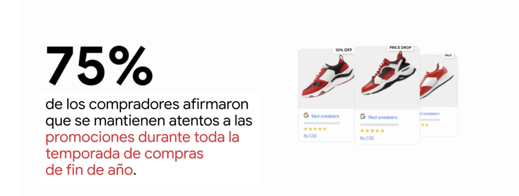 Al planificar estratégicamente promociones que generen expectativa antes de las fechas clave, los marketers pueden extender el interés de compra más allá de un solo día logrando un rendimiento sostenido durante toda la temporada. Atrae a los compradores detectives de descuentos proporcionando información clave como promociones, calificaciones, reseñas y opciones de cumplimiento del pedido para tus productos.
