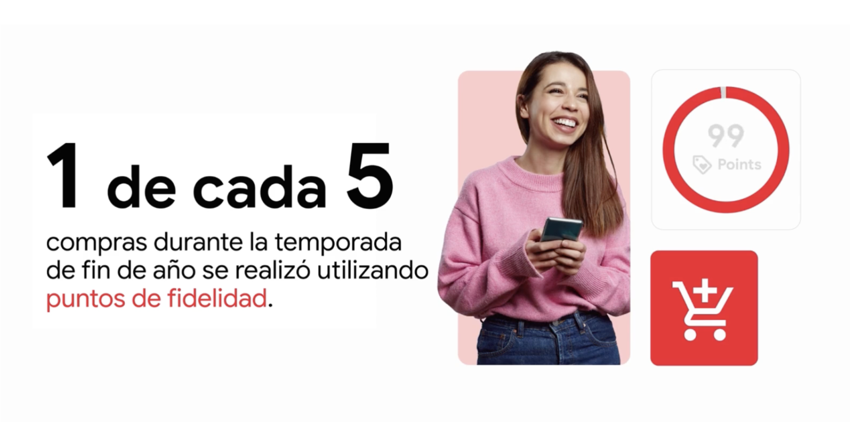 A medida que los compradores conocen tu marca, las experiencias positivas son cruciales para generar un sentimiento de cercanía. Los estudios demuestran que la calidad, la confianza, la reputación y el servicio ayudan a que los compradores conecten con las marcas. Además, las compras que involucran una investigación previa tienen mayor probabilidad de generar en los consumidores un sentimiento de afinidad con la marca. Estas conexiones producen resultados: 1 de cada 5 compras durante la temporada de compras de fin de año se realizó utilizando puntos de fidelidad.
